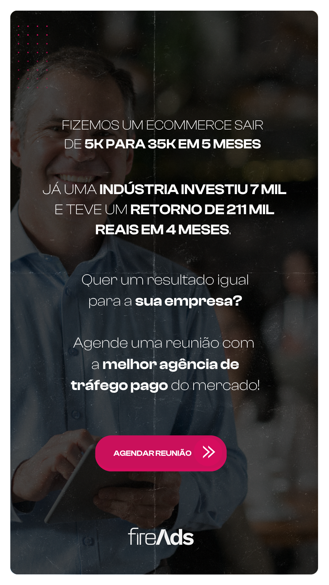 Caso possa investir com mais solidez, contrate uma agência de tráfego pago que te entregará todas as variáveis para o sucesso: Criativos, Copy e Landing page.